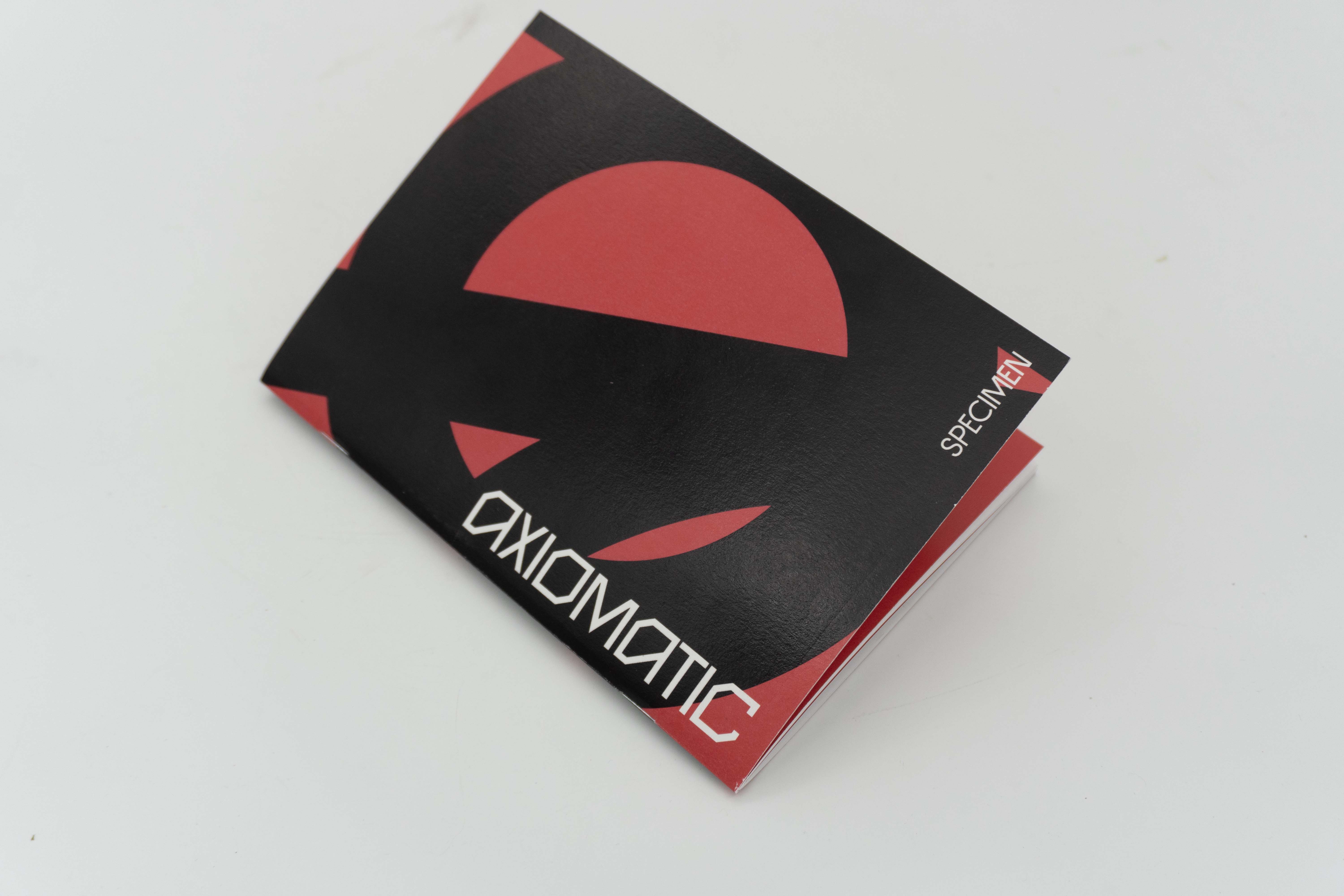 The typeface's identity lies in its geometric alternative characters that add versatility and variety to Axiomatic as a whole.