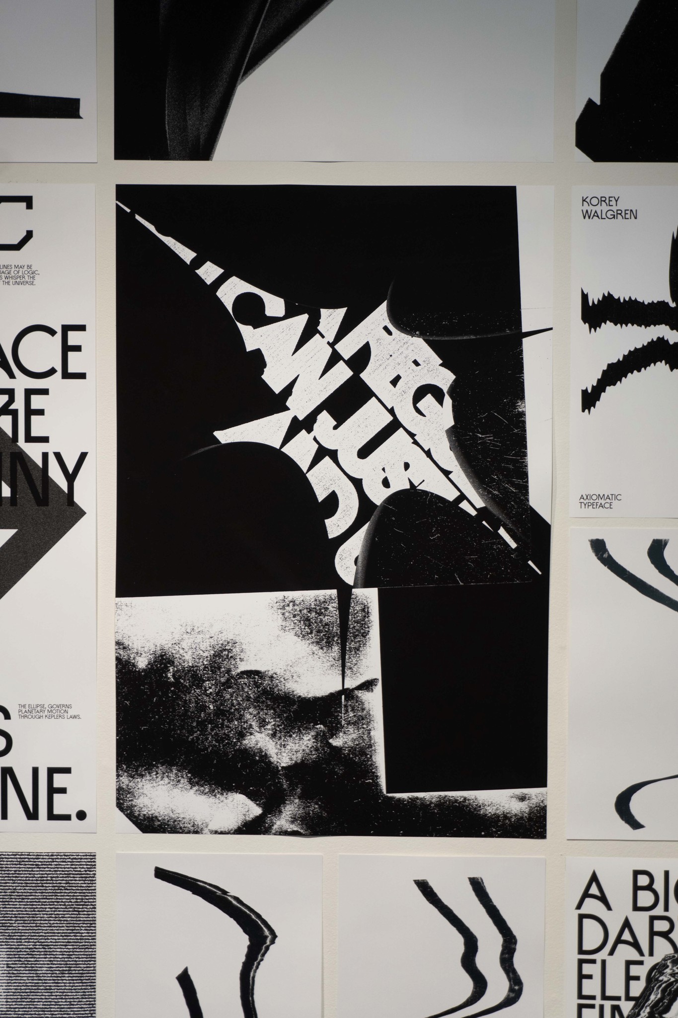 The final exhibition consisted of 11 experimental posters, an alphabet of manipulated letterforms, and three books detailing process, experimentation, and implementation of Axiomatic.