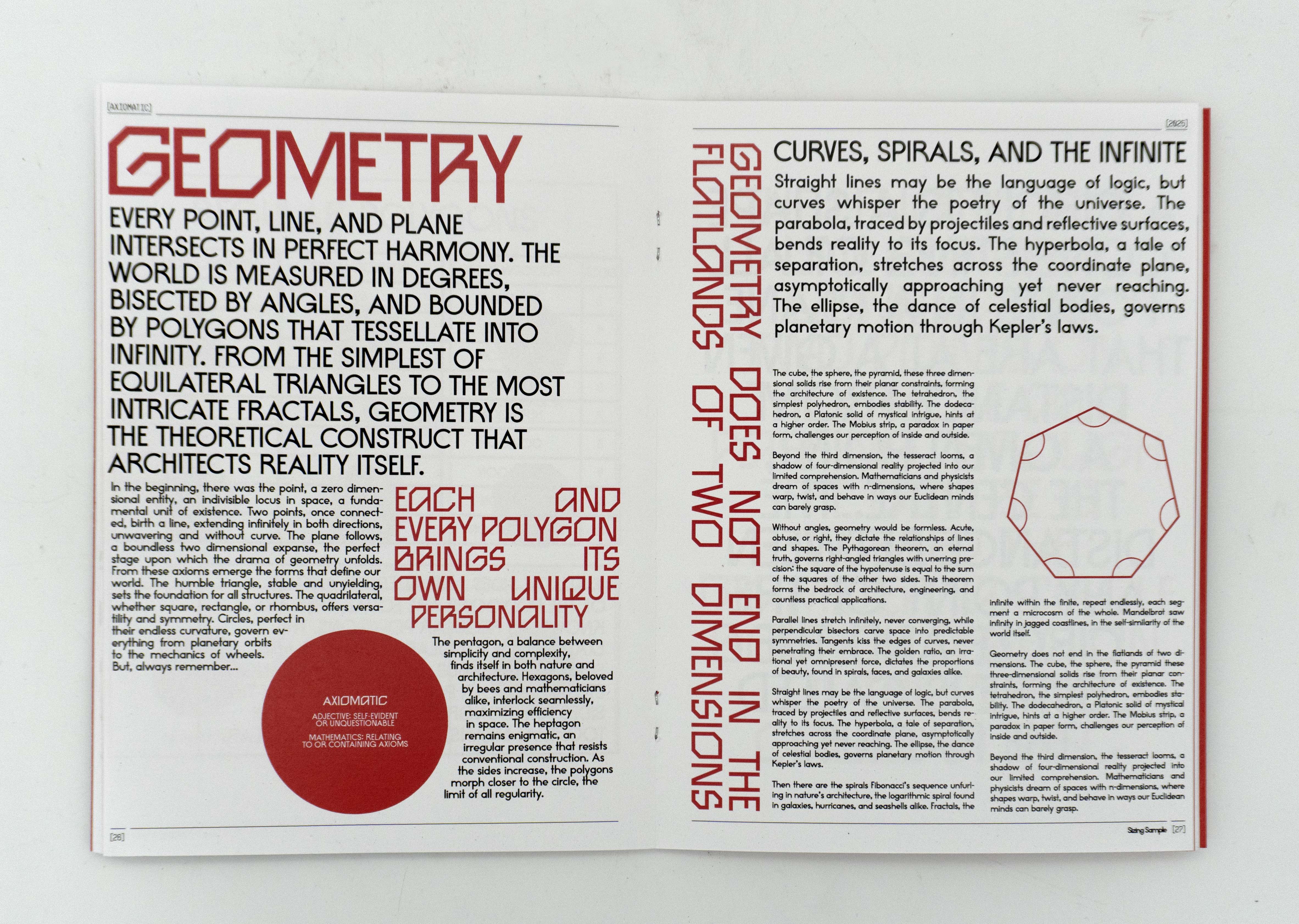 Created for my senior exhibition at MCAD, Axiomatic allowed me to explore freely and express my love for geometric form, organic composition and experimental typography.